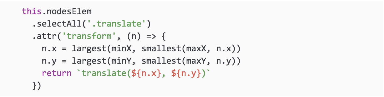 In this component, render does much less than normal: nothing more than creating the SVG element that serves as the home for the D3 drawing surface.